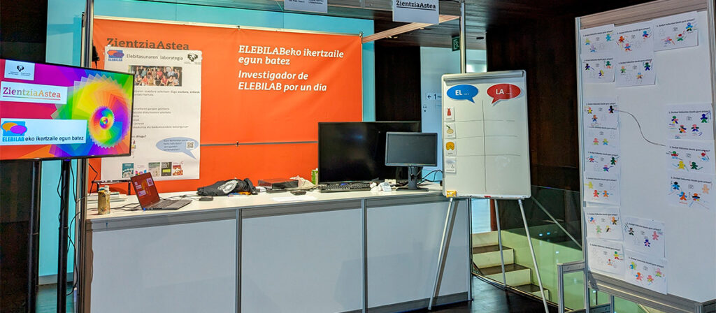 El objetivo de este stand es que los participantes reflexionen sobre el lenguaje y el bilingüismo, asumiendo el rol de investigadores y experimentando directamente con algunos temas de investigación del laboratorio ELEBILAB. De hecho, en este txoko haremos juegos con algunos de los temas que se tratan en el grupo de investigación Elebilab de la UPV/EHU, y así ilustrar la investigación que se hace sobre ellos.