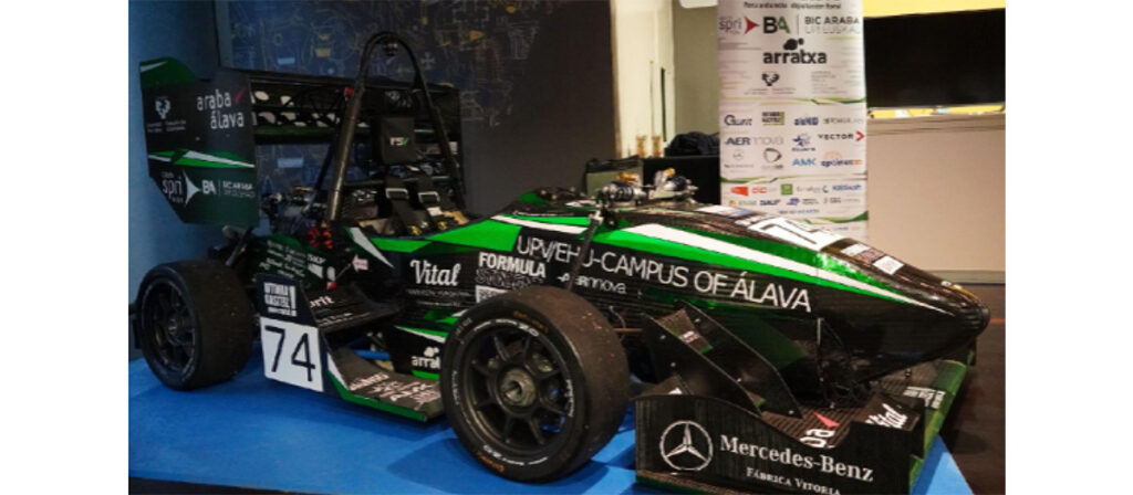 Formula Student Vitoria presenta su monoplaza eléctrico de competición con monocasco de carbono, con una breve descripción de sus componentes y la importancia del transporte eléctrico. A una escala más pequeña, se propone una actividad para los más pequeños donde ensamblarán su propio coche eléctrico a escala, con unos pequeños toques de aerodinámica y estructuras.