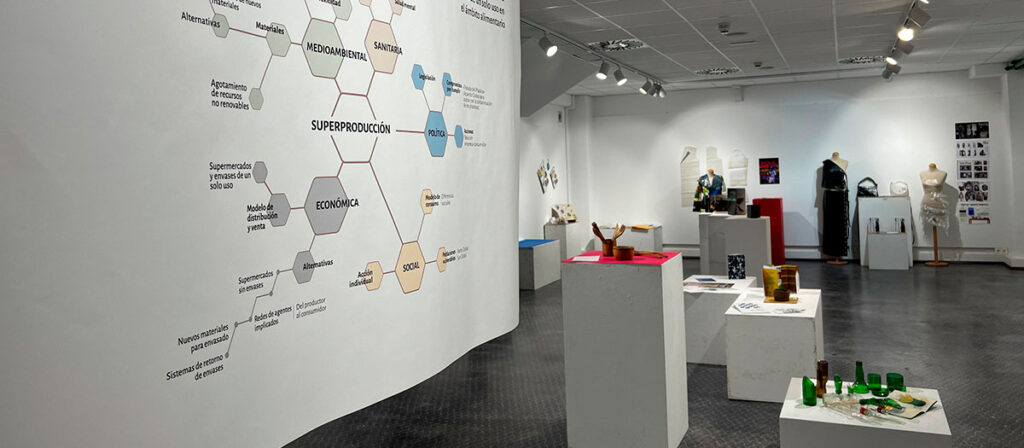 En la exposición se muestran siete de esos proyectos, en los que el alumnado implicado ha desarrollado nuevos soportes para esta ocasión: Elena Cruz (infografía informativa); Sara Arteche (mechandising para concienciar); Lucía Manjarres (colección de moda hecha con plástico con enfoque de denuncia y soportes editoriales); Sofía López (utensilios de cocina de botellas de vidrio reutilizado); Catalina Jacob (revista ilustrada didáctica e informativa); Elecé Allende (fotolibro de denuncia visual en torno a la contaminación plástica); Alexandra (libro de concept art que imagina un mundo postapocalíptico debido a la sobreutilización de plásticos).