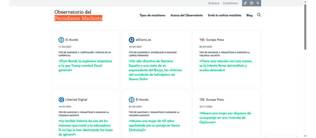 Los medios de comunicación en ocasiones hacen una cobertura sexista de la realidad. El Observatorio del Periodismo Machista del grupo de investigación Bitartez señala estos casos y propone alternativas que no discriminen a la mitad de la sociedad. ¿Te ves capaz de detectar estos titulares machistas y convertirlos en igualitarios?